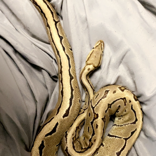 I'm a 5 year old male pinstripe ball python that's looking for my new forever home. The shelter recommends a 40 gallon or larger enclosure for me.